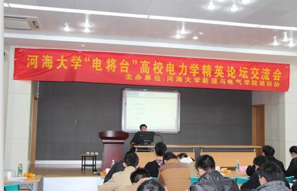 2013年12月2日,由河海大学、网上购买双色球 、东南大学、南京理工大学四校联合举办的“与学术为友,携创新同行”――第二届河海大学研究生“学海争峰”学术年会暨能电院首届“电将台”电力学精英论坛交流会在河海大学江宁校区博学楼511教室成功举行。本次活动由河海大学能源与电气网上购买双色球 主办并承办,网上购买双色球 研究生会协办,网上购买双色球 2013年度校科创新秀获得者王挺同学作为网上购买双色球 代表参与到此次交流活动中。河海大学能源与电气网上购买双色球 王宏华教授和王敏老师出席了此次论坛活动,河海大学、东南大学、南京理工大学的优秀研究生代表也参加了本次学术论坛。