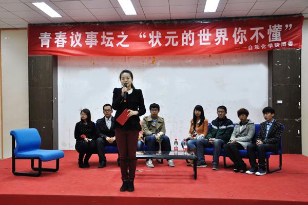12月4日晚,青春议事坛之“状元的世界你不懂”活动于将军路校区艺术中心多功能厅举行,八名学生代表围绕“高考文科状元刘丁宁退学复读”事件展开了热烈的讨论。人文与社会科学网上购买双色球 教师娄和标、网上购买双色球 团委书记季娟以及各年级辅导员作为评委出席了本次活动。 2013年,辽宁省本溪市文科状元刘丁宁以668(+10)分被香港大学中文系录取,并获72万元人民币奖励。10月初,刘丁宁离开港大,目前已经回本溪高中复读。对此,刘丁宁说,她追求更纯粹的国学,梦想进入北京大学中文系,北大也更适合自己。 八名学生代表首先表明了各自的立场,支持刘丁宁的学生认为这位女生的可贵之处,在于她遵从了自己的内心,敢于放下一些功利的考量,去追求契合自己心灵的国学梦、北大梦;反对的同学则认为刘丁宁刚到港大,没有充分了解港大及专业情况,就仓促退学,是一种不成熟的举动。接着同学们从北京大学与香港大学教学理念的不同为切入点,深入探讨了有关中西方教育和人才选取倾向上的差异、大学生的适应能力等问题,并且从“状元的世界你不懂”这一议题联系到了大学生的实际生活。八名学生代表在思辨的讨论中碰撞出了思维的火花,呈现了不同思想对同一事件的不同解读,展现了当代大学生有思想、有创造力的青春风采。在学生代表的交流讨论中,现场观众们也就“如果你是刘丁宁会做何种选择”及“你是如何适应大学生活”的两个话题展开了激烈的讨论,现场气氛活泼热烈而又井然有序。 最后,西方哲学博士娄和标对本次青春思辨活动进行了总结。他说道,我们每个人都有各自独特的价值取向和自由选择权。只要这样的价值取向和自由选择权没有违法乱纪,也没有违背社会伦理道德,那么我们每个人就都应该尽可能地理解其价值取向和自由选择权。