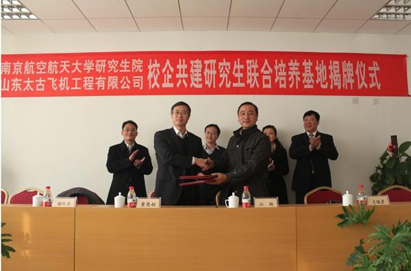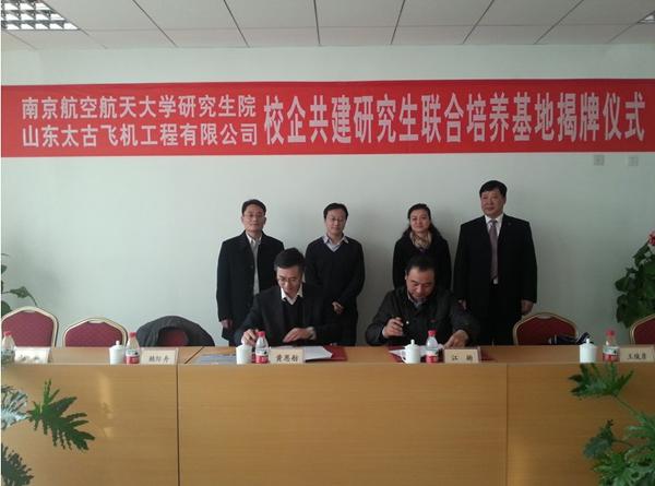 2013年12月6日,网上购买双色球 与山东太古飞机工程有限公司共建研究生联合培养基地签字暨挂牌仪式在济南顺利举行。出席仪式的有山东太古飞机工程有限公司总经理黄恩舫、副总经理杨光耀、培训部韩勇强经理、技术中心顾辉主任、技术工程部常城经理,南航大研究生院副院长江驹、网上购买双色球 副院长赖际舟、电气工程系副主任陈新以及公司所有领导和部分员工,签字挂牌仪式由韩勇强主持。
