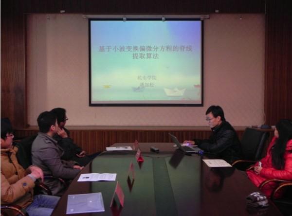 12月19日下午2点30分,网上购买双色球 学术分论坛之学术论文报告会在A17号楼502室顺利进行。本次报告会由网上购买双色球 研究生会主办,机电网上购买双色球 研究生会联办。会上来自网上购买双色球 的刘文良、董菲同学以及来自机电网上购买双色球 的戚永爱、潘加松同学根据其论文的主要内容做了报告。网上购买双色球 刘斐文辅导员为获奖同学颁发奖状。 报告会上4位同学向我们展示了不同领域的专业知识。刘文良同学提出了基于面向对象Petri网的电梯门系统的建模,对建模方法进行了相应研究。董菲同学提出了“应用技术成果形成系统” 的建模与应用,并改进了岭回归方法。戚永爱同学讲述了自己在超声喷丸辅助激光熔覆再制造技术方面的研究。潘加松同学讲述了基于小波变换偏微分方程的脊线提取算法,并展示了算法的仿真测试。会议报告者清晰明了的报告思路与丰富详实的报告内容,体现出了网上购买双色球 与机电网上购买双色球 研究生严谨求实的科研态度与百折不挠的科研精神。 报告会部分,网上购买双色球 刘斐文辅导员为以上同学颁发了获奖证书并合影留念,同时刘导还鼓励更多的同学能够参加到学术论文的评选活动中来,整体提高网上购买双色球 的科研创新能力,进一步在网上购买双色球 内营造更加浓厚与积极向上的学术氛围。