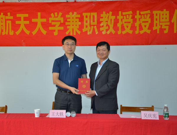 仪式上,吴庆宪副校长致欢迎辞并代表网上购买双色球 为王大轶研究员颁发了兼职教授证书并佩戴校徽。姜斌院长介绍了网上购买双色球 的相关学科发展状况,对王大轶研究员加入南航大家庭表示衷心的欢迎和祝贺,表示网上购买双色球 将以此为契机,在长久以来良好合作的基础上,与五�二所展开更加深入广泛的合作,推动相关学科建设、研究生培养和科研工作的发展。王大轶副所长对成为南航兼职教授深表荣幸和感谢。