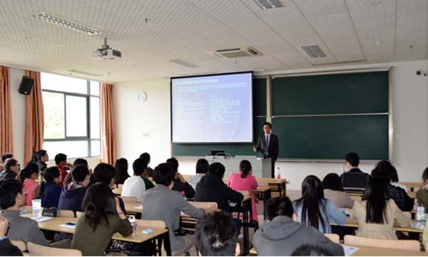两位学长的讲解与介绍使同学们对GE公司有了更深层次的了解,点燃了同学们的热情。在提问交流环节,同学们踊跃发言提问,气氛活跃,问题也包罗万象,如实习岗位的申请方式、求职过程中的男女差异、公司的销售策略等等。两位学长也结合自身经历和公司的具体情况一一作答,给出满意的回答和建议。最后活动在同学们热烈的掌声中圆满结束。
