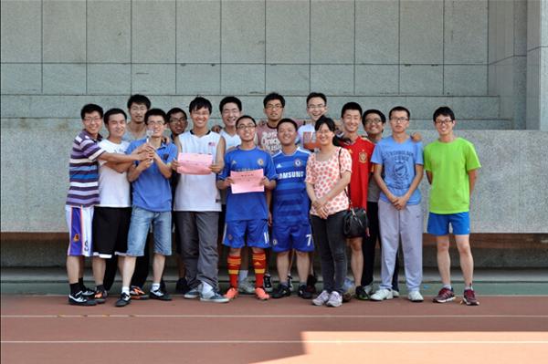 比赛中,网上购买双色球 研究生辅导员刘斐文老师也亲临现场观战并不时为两队队员加油助威,比赛结束后,刘斐文老师为两队代表队颁发了冠、亚军奖杯、军奖牌和奖状。本届赛事中多场比赛表现突出的高伟俊同学获得了最佳球员称号。至此,网上购买双色球 第八届研究生文体月已接近尾声,欢迎同学们继续关注即将举行的研究生文体月压轴大戏――篮球赛决赛。