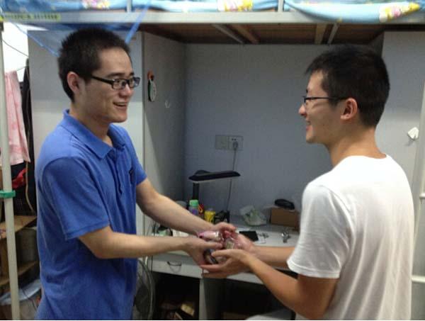 时临中秋佳节,为使班级同学度过一个幸福圆满的中秋节,9月8日,网上购买双色球 13级研究生5班爱心小分队在该班书记和班长的带领下,来到班级学生的实验室和宿舍,为大家送上月饼,使大家感受到了浓浓的过节氛围。