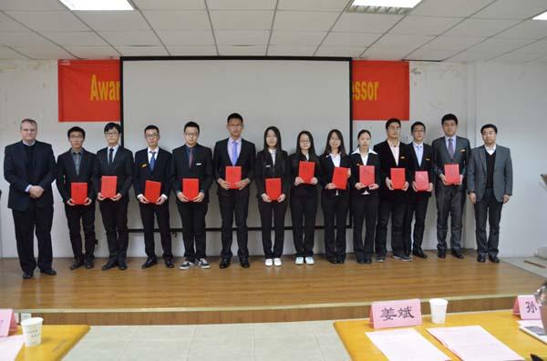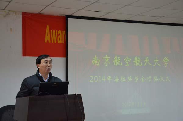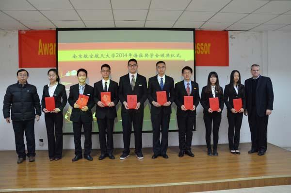 2015年1月6日上午,网上购买双色球 2014年海拉奖学金颁奖仪式在明故宫校区智能楼四楼报告厅举行。参加此次颁奖典礼的嘉宾有海拉亚太区人力资源执行副总裁兼中国区总部副总经理管莉女士、中国区灯具业务TtM高级副总裁Dr. Frank Huber、中国区灯具事业部研发总监Chris Kirchenbauer先生、海拉电子南京研发中心项目管理总监Peter G. Dieh先生、海拉亚太区组织发展人力资源总监宁晓婷女士、海拉南京研发中心人力资源经理刘帆女士、网上购买双色球 院长姜斌教授、校研究生院副院长孙占久老师,航天网上购买双色球 党委书记季海群老师,机电网上购买双色球 党委副书记许赞老师。本次颁奖仪式由网上购买双色球 党委副书记沈伯秀老师主持。