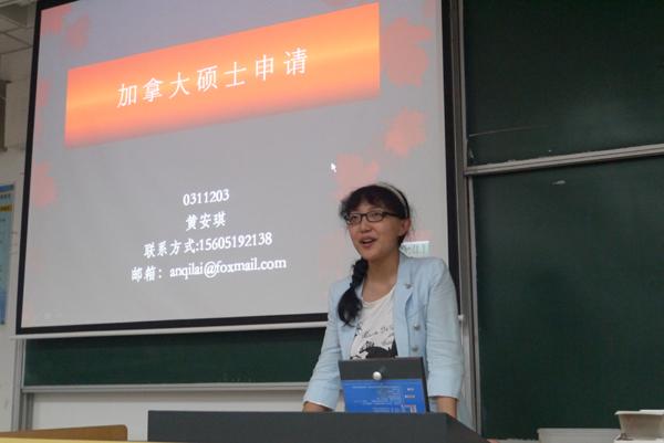 第一位上台的是黄安琪学姐,她已经拿到了加拿大英属哥伦比亚大学的offer。学姐认真地向我们介绍了她语言考试、材料准备的时间安排,给同学们提供了宝贵的时间借鉴经验。第二位上台的是周巍巍先生,作为专业中介,他向同学们介绍了目前全球各国大学的申请难度和网上购买双色球 特色,让同学们对申请网上购买双色球 有了一定的了解。第三位上台的是陈音如学姐,已经成功拿到英国帝国理工大学offer的学姐给学弟学妹们讲述了雅思考试的准备经历和培训班报名的技巧,让同学们明白如何可以做到效率和成本兼顾。