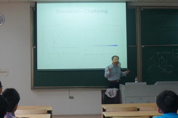 每一节课严老师都讲的激情澎湃,带动了学生学习非线性控制方法的热情,以及学习和研究滑模控制的激情。老师教的认真,学生学的认真。每次课件休息时间,总有学生向严老师请教问题,严老师也是认真解答每一个问题。
