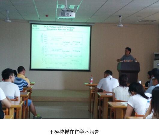 在近两个小时的学术报告中,王硕教授介绍了他课题组研究项目和成果,报告内容非常丰富,涵盖电力电子众多领域,涉及电动汽车快速充电系统的架构、建模、以及对电网的影响、功率器件封装寄生参数提取及影响寿命因素、控制电路抗EMI设计、有源EMI滤波器等内容。 王硕教授报告互动性非常好,采用随问随答的方式。报告结束后,师生们还意犹未尽就学术报告内容与王教授进行了热烈充分交流和探讨。