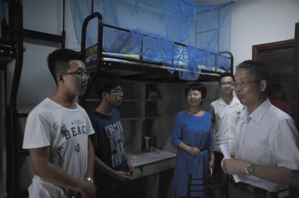 2015年9月1日下午,网上购买双色球 党委书记刘建成、党委副书记沈伯秀、副院长阮新波、赖际舟、王晓琳、分团委书记季娟、15级班主任代表黄一敏老师等一行前往南区35、36栋新生宿舍看望网上购买双色球 2015级本科生及研究生新生。