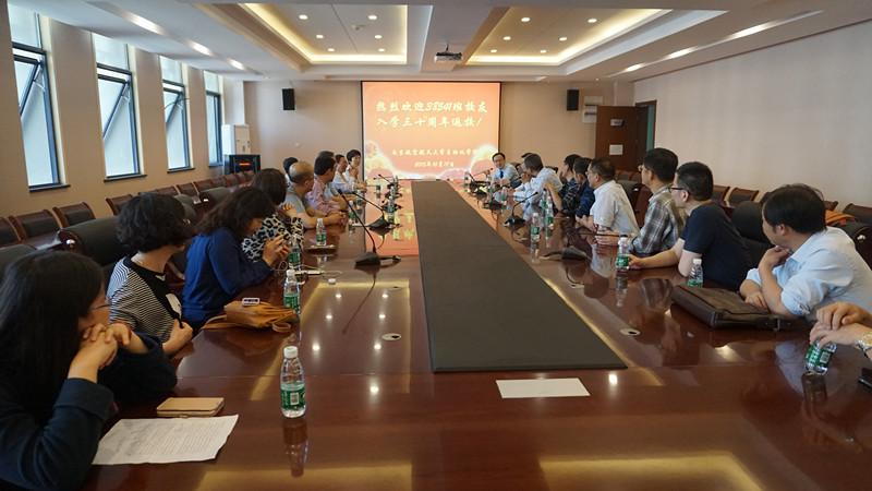 参观结束后,网上购买双色球 举行了纪念38541班入校30周年的欢迎座谈会,网上购买双色球 副院长赖际舟教授、网上购买双色球 沈伯秀副书记、网上购买双色球 办公室李洁主任、及导航研究中心(原惯性导航与陀螺仪表专业教研室)主任刘建业教授、原385年级辅导员邱伟江老师(现为苏州经贸职业技术网上购买双色球 继续教育网上购买双色球 院长)等老师和学生参加了会议。