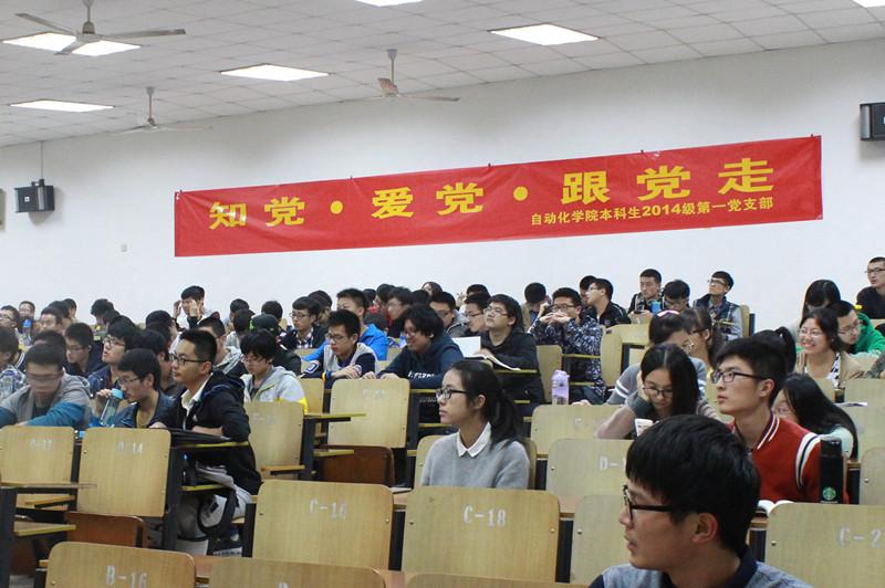 为提高大学生入党积极性、促进党支部建设,2015年11月5日晚7点在将军路校区4301教室,网上购买双色球 本科2014级党支部面向电气工程及其自动化和测控技术与仪器两个专业350名同学展开“知党、爱党、跟党走”入党知识宣讲会。网上购买双色球 2014级辅导员韩楚、年级党支部书记冯攻关参加了本次活动。