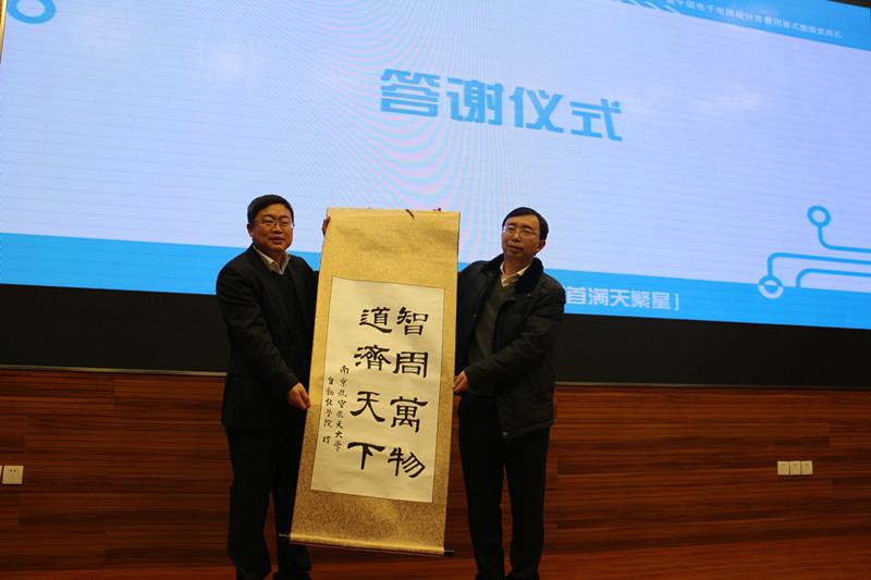 本次仪式分“来路十年,仰首满天繁星”,“日夜伏案,淬炼学子心志”,“创新求真,我心始终不渝”三个篇章。一段精彩的竞赛回顾视频调动全场气氛,梦之声音-诗朗诵《十年电赛,一梦鸿鹄》后,网上购买双色球 院长姜斌教授致辞,感谢十年来有关单位、领导的支持,也对电赛的未来寄予了更高的期望,他代表承办方赠予赞助方学生书写的校训卷轴。中航工业天津航空机电有限公司王树刚董事长介绍了公司,他期待能有更多的校企合作机会。
