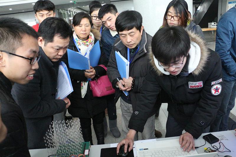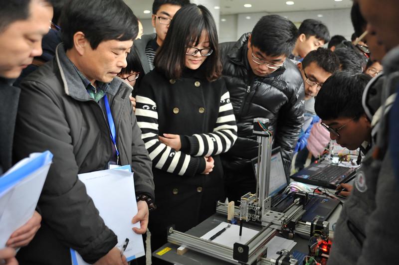 决赛于下午一点半开始,评委由东南大学胡仁杰教授、解放军理工大学潘克修教授、徐志军教授,南京师范大学王恩荣教授、南京工业职业技术网上购买双色球 狄建雄教授5位校外专家及校内专家10人共15位专家组成。决赛评审区内专家分组进行评审,同学们的巧妙创意和工程实践能力令评委们称赞不已。经过评委分组评分和各组合议,本届竞赛共评出特等奖1项,一等奖9项,二等奖20项,优胜奖15项,最佳工程实践奖2项和最佳工程创意奖1项。