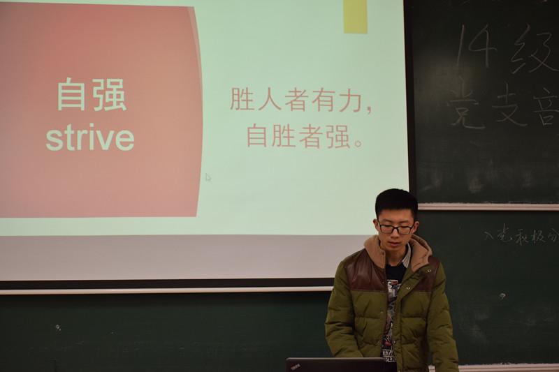 首先,辅导员韩楚就发展党员的流程、入党动机等问题发表了讲话,她谈到,中国共产党是代表先进的组织,是每个优秀的学生向往的组织,但是,很多同学虽然在思想上期望入党,却在行动中表现的不够积极。希望入党的同学除了主动向组织提交入党申请书外,还应该积极学习党的理论知识,为党课考试认真准备,并在平时注意定期记录自己的想法和生活,定期向组织提交思想汇报。思想汇报不是用来应付流程的材料,而是真实向组织反映自己思想不断进步的渠道。