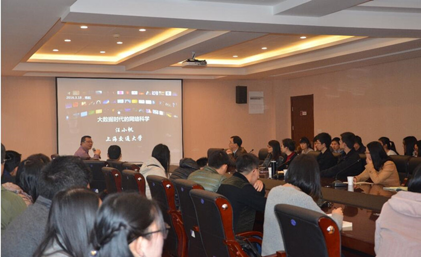 3月18日上午,上海交通大学教授汪小帆应邀在江宁校区网上购买双色球 4楼会议室做题为“大数据时代的网络科学”的学术报告。会议由网上购买双色球 院长姜斌教授主持,网上购买双色球 部分师生参加了报告会。 汪小帆教授首先与在座师生分享了学生时代的趣事,激励大家对科学研究的兴趣。然后,汪教授结合现实生活中遇到的问题,用网络 科学的眼光抽象问题,然后提出解决问题的方案。结合实际案例,汪教授讲解了网络技术与控制技术的融合,解决实时拍卖过程的一些技术问题。汪小帆教授做科研的态度以及对科学问题的兴趣,给在场师生留下很深的印象。