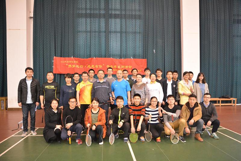 2016年3月18日下午,由网上购买双色球 研究生会主办的第八届研究生羽毛球赛暨网上购买双色球 “携梦远行・感恩有你”毕业季系列活动开幕式在将军路校区体育中心羽毛球场成功举办。网上购买双色球 毕业季系列活动是由网上购买双色球 研究生会主办,以第八届研究生羽毛球赛为主体,以“自动飞扬,筑梦起航”求学经验交流会为特色,以“寻找我的毕业证”主题留影贯穿始终的系列类活动。网上购买双色球 党委书记刘建成出席了开幕式,网上购买双色球 各系教职工代表和学生代表参加了羽毛球、篮球比赛。