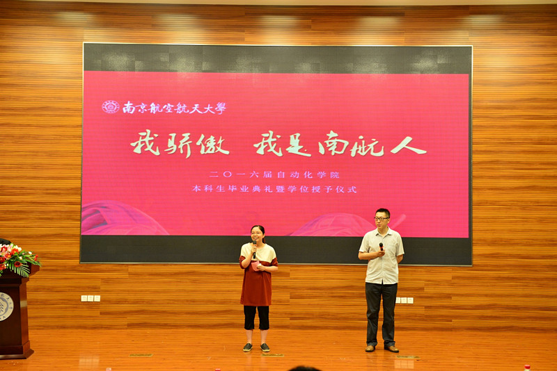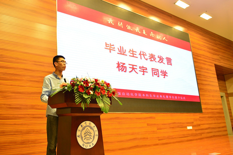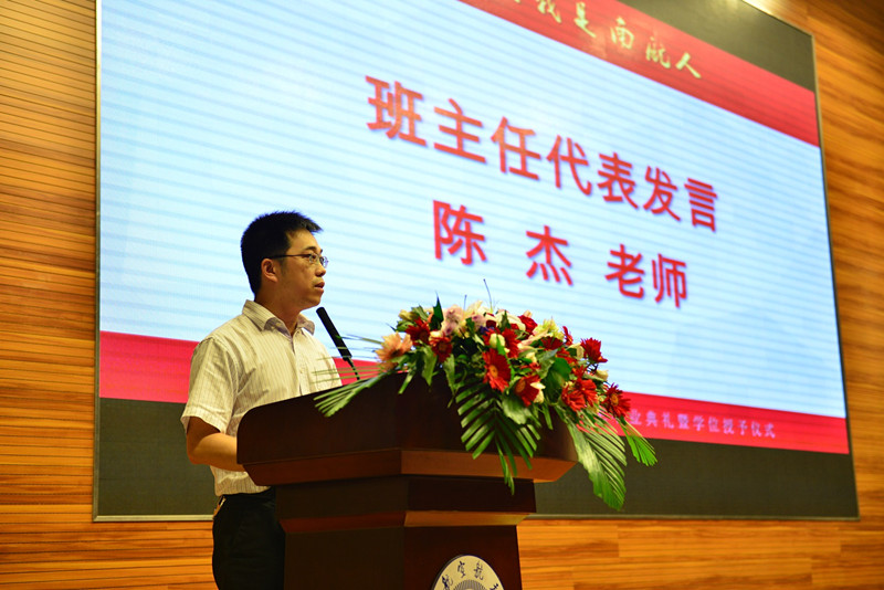 陈杰老师作为毕业班班主任代表,回顾了四年来与同学们相处的美好时光,祝福同学们前程似锦,成为南航和网上购买双色球 的骄傲。