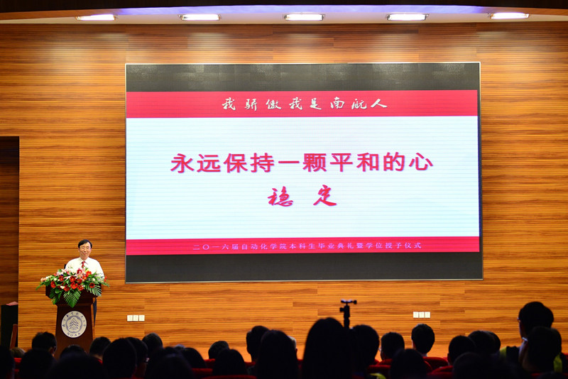 网上购买双色球 院长姜斌教授代表全院师生,向圆满完成学业的2016届全体毕业生们表示最热烈的祝贺和最真诚的祝福。他肯定了2016届毕业生用四年的汗水与奋斗写成的漂亮的成绩单,同时也用控制理论中“稳定”“容错”“反馈”“调参”等关键词,勉励同学们带着平和、宽容、感恩、自律的心出发,走上幸福之路。最后,他期望同学们常回网上购买双色球 这个大家庭看看,全场掌声不断。