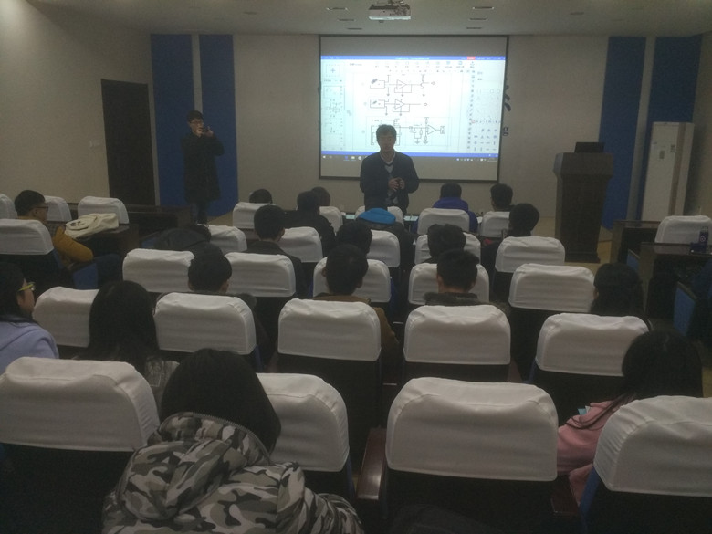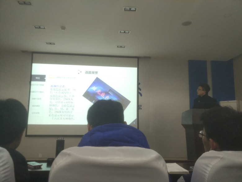 第三、第五、第六、第八组为声光控制的LED楼道灯设计,分别由曹治、李志鹏、王宇航、胡磊同学进行汇报。他们通过简洁的原理图、清晰的讲解,从不同的切入点,向同学们介绍自己的课题情况。王老师在提问环节提出疑问和建议,并鼓励同学们从事研究要追求完美。
