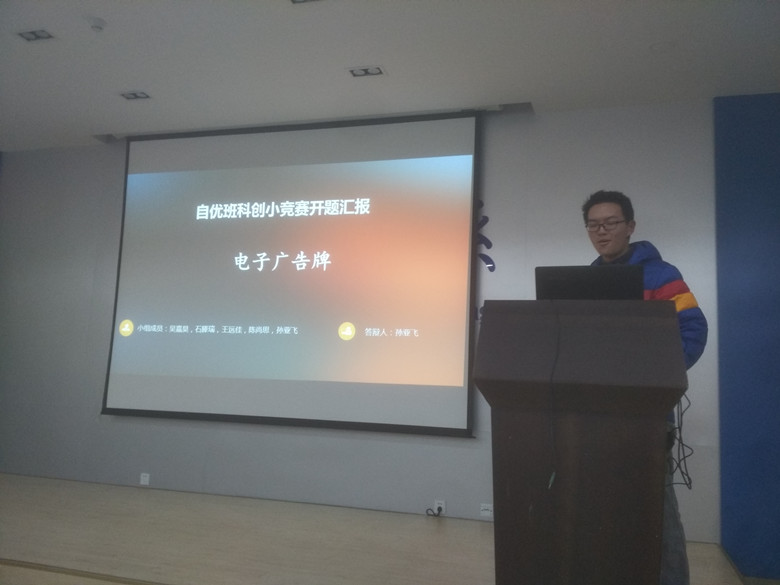 第二组、第七组为电子广告牌小组,分别由储何、孙亚飞两位同学担任队长。寒假期间对电路和仿真软件等的提前学习,对课题项目的研究有很大帮助。这两个小组的研究进展得到了王老师的认可。