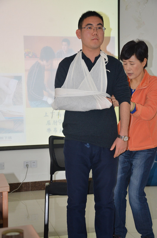 培训中,南京市红十字会的老师给各位学员讲解了急救原理等基础知识,并通过理论联系实际的教学手段让学员们快速掌握各类应急处理常识。老师们首先从常见的急症应急处理方法着手,运用幽默诙谐的语言,联合实际案例,详细讲解了晕厥、各类中毒、外伤出血、呼吸道堵塞等疾病的基本知识及简单处理方法,现场操作展示及成员自己动手演练的双重学习方式也让学员们在轻松的学习氛围中快速掌握了各类应急处理方法。