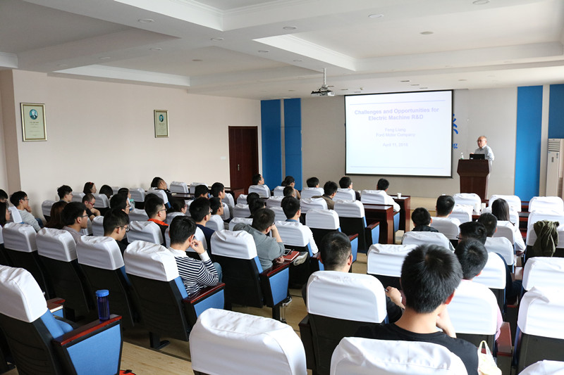4月11日, Liang Feng博士在网上购买双色球 3号楼报告厅做“Challenges and Opportunities for Electric Machine R&D”学术报告,网上购买双色球 近百名师生参加了报告会。报告从新能源汽车驱动电机的基本原理、特性和要求出发,分析新能源汽车驱动电机的转矩-功率特性,提炼出新能源汽车驱动永磁电机的高效率、转矩密度提升及振动噪声等核心问题,并介绍了福特公司研发团队在效率提升及转矩脉动抑制等领域取得的诸多研究成果和创新思想。报告会持续3个多小时,极大拓宽了师生对于新能源汽车驱动系统的认识和视野。