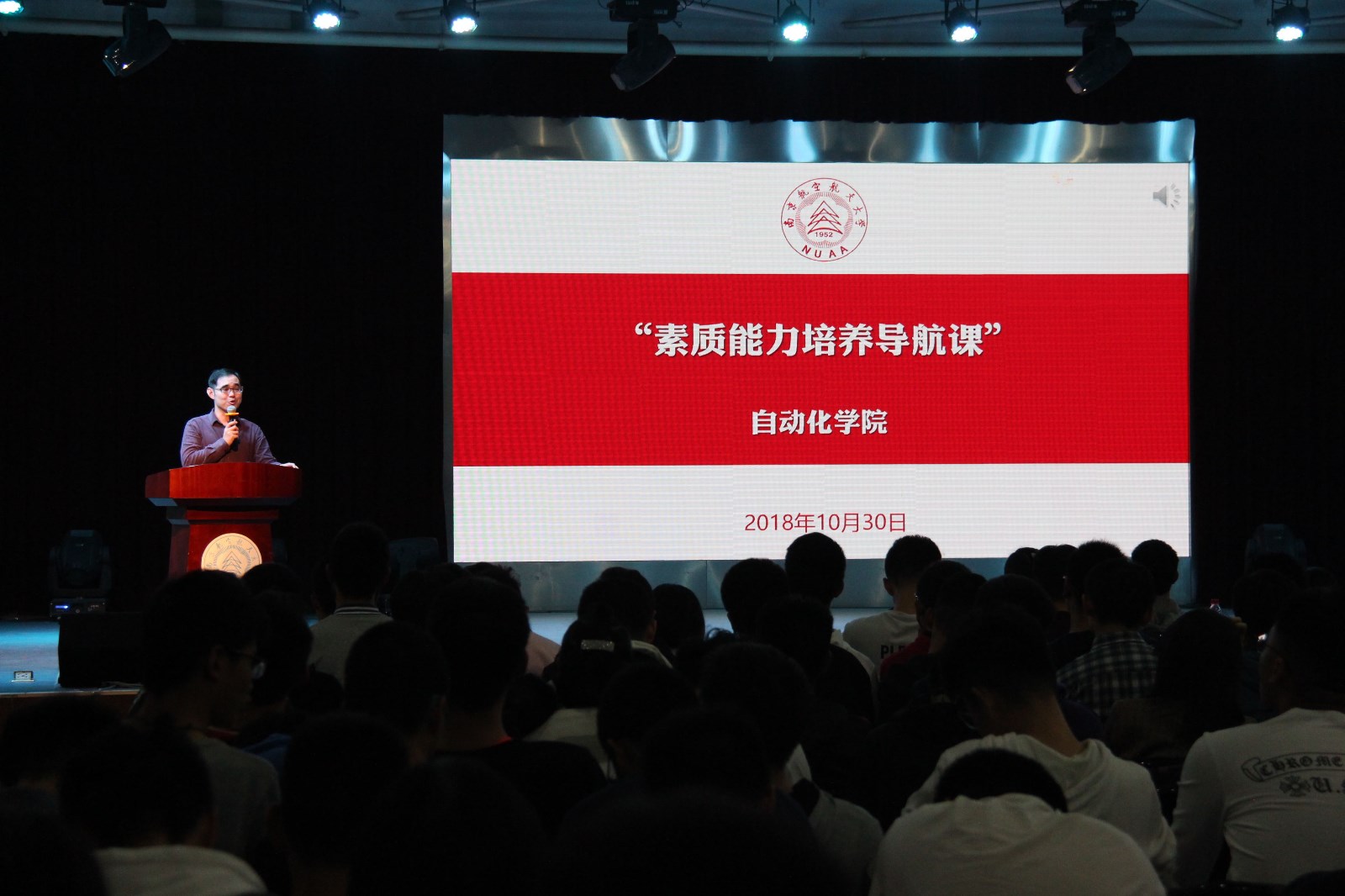 10月30日晚,2018级网上购买双色球 新生素质能力导航课在南航将军路校区大学生活动中心举行。网上购买双色球 党委副书记张跃老师,2018级本科生辅导员杨兴旺老师、汪明锐老师、赖少将老师,优秀学生代表2015级龙腾跃、程真,2018届毕业生江柳慧,2016届毕业生孙林楠以及全体2018级网上购买双色球 本科新生参加了此次活动。