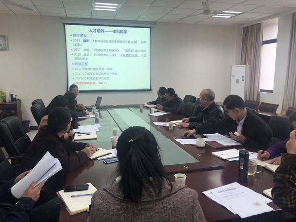随后,生物医学工程系主任李韪韬对近年来系所取得的成果进行了汇报和介绍,经过师生的共同努力,生物医学工程的学科实力稳步提升,目前已获批国家自然科学基金重大科研仪器研制项目1项、交叉学科项目立项1项,获得省级、校级教学奖一等奖各1项,并发表了多篇高水平学术论文。刘建成书记对生物医学工程系近几年的发展给予高度肯定,希望能够始终保持发展劲头,取得更多新的突破。