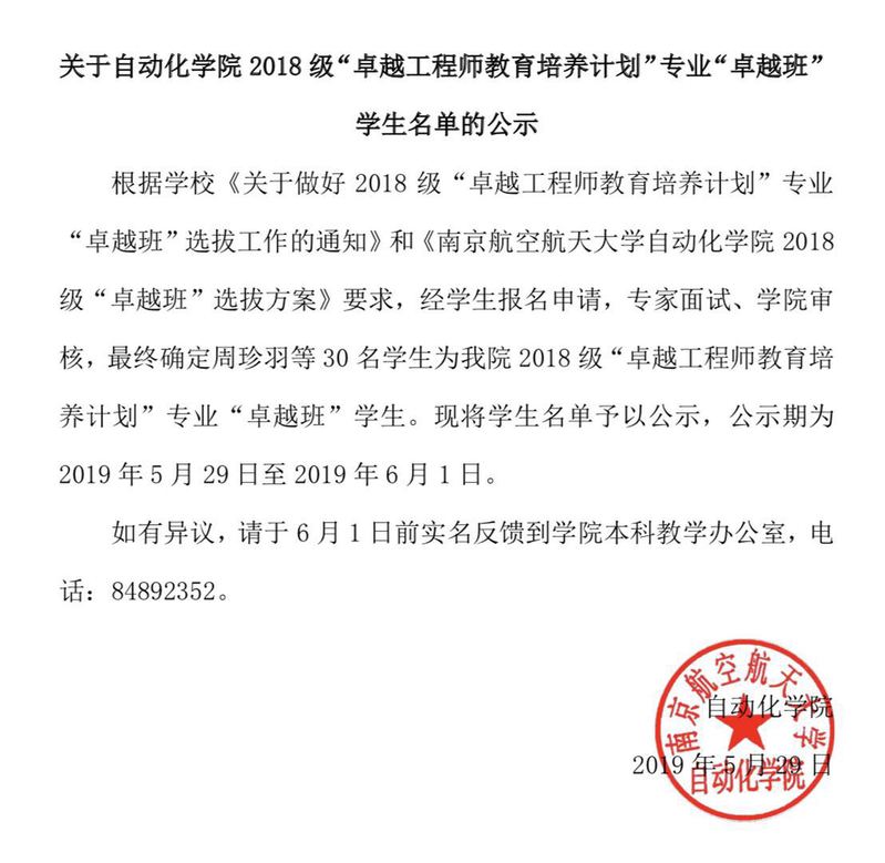 关于网上购买双色球 2018级“卓越工程师教育培养计划”专业“卓越班”学生名单的公示