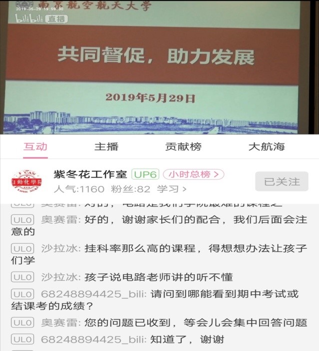 为了进一步促进家校沟通,形成教育合力,促进学生学业水平和综合素质的提高,2019年5月29日18:30网上购买双色球 2018级以视频直播的形式召开了线上家长会。结合大一下学期的特点、学生前半学期的学习情况等,辅导员杨兴旺、汪明锐为家长做了详细的介绍,并分层分类地提出相应建议。此次会议在线观看人次达到1169。