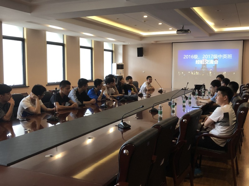 6月22日下午,本科2016级中英班优秀学生代表俞沈恒、张传庚、潘岳和张显回到网上购买双色球 ,在自动化院楼403会议室为即将出国留学的2017级学生作经验分享,分享会由网上购买双色球 本科2017级辅导员肖帆主持。