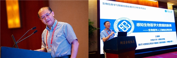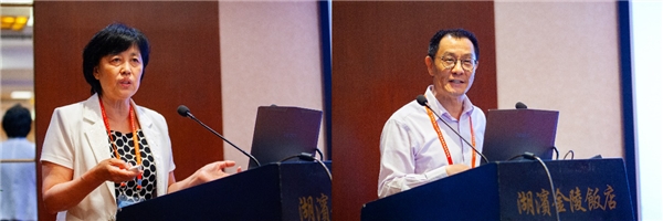 中国科网上购买双色球 上海系统生物学研究所陈洛南研究员(左)和中南大学王建新教授(右)作大会主题报告