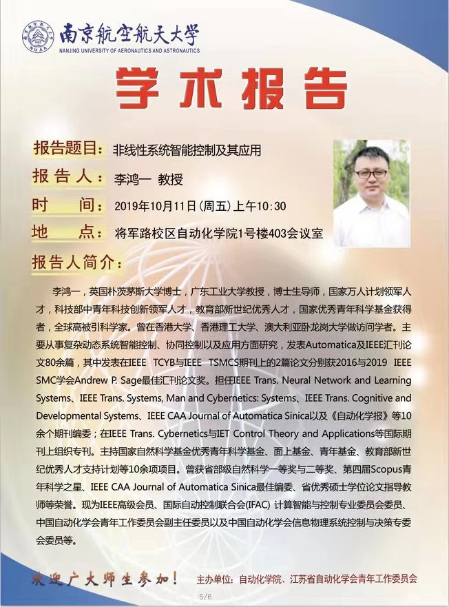 学术报告:非线性系统智能控制及其应用