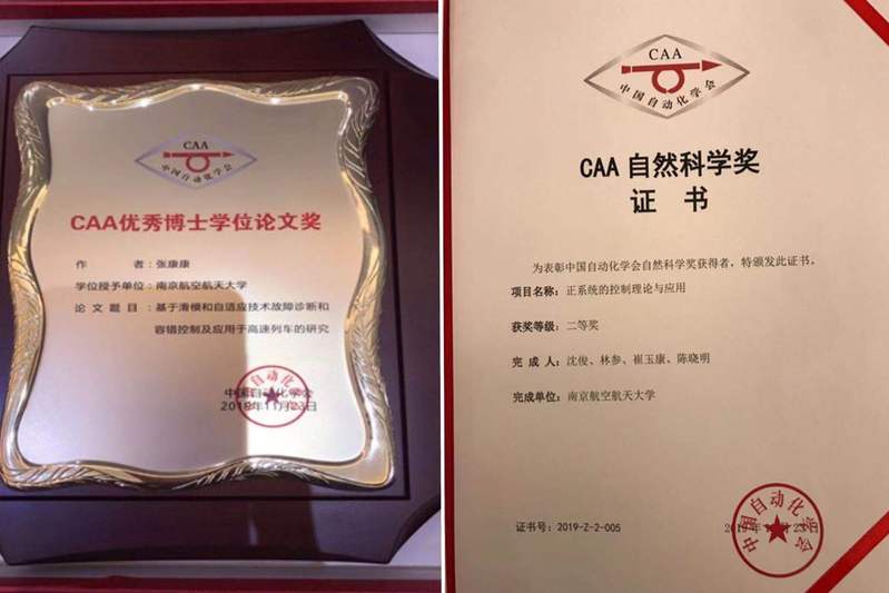 张康康博士,于2018年毕业于网上购买双色球 ,师从姜斌教授,其博士学位论文《基于滑模技术故障诊断和容错控制及应用于高速列车的研究》获得2019年度CAA优秀博士学位论文奖。该论文深入研究了微小故障的幅值特性及演变特性,提出了微小故障的数学描述方法,为基于模型的微小故障诊断奠定了扎实的理论基础。张康康博士在读博士期间,在IEEE Trans. 等高水平期刊上共发表(录用)学术论文15篇,获工信部创新奖、国家奖学金、网上购买双色球 群星创新奖等奖励。