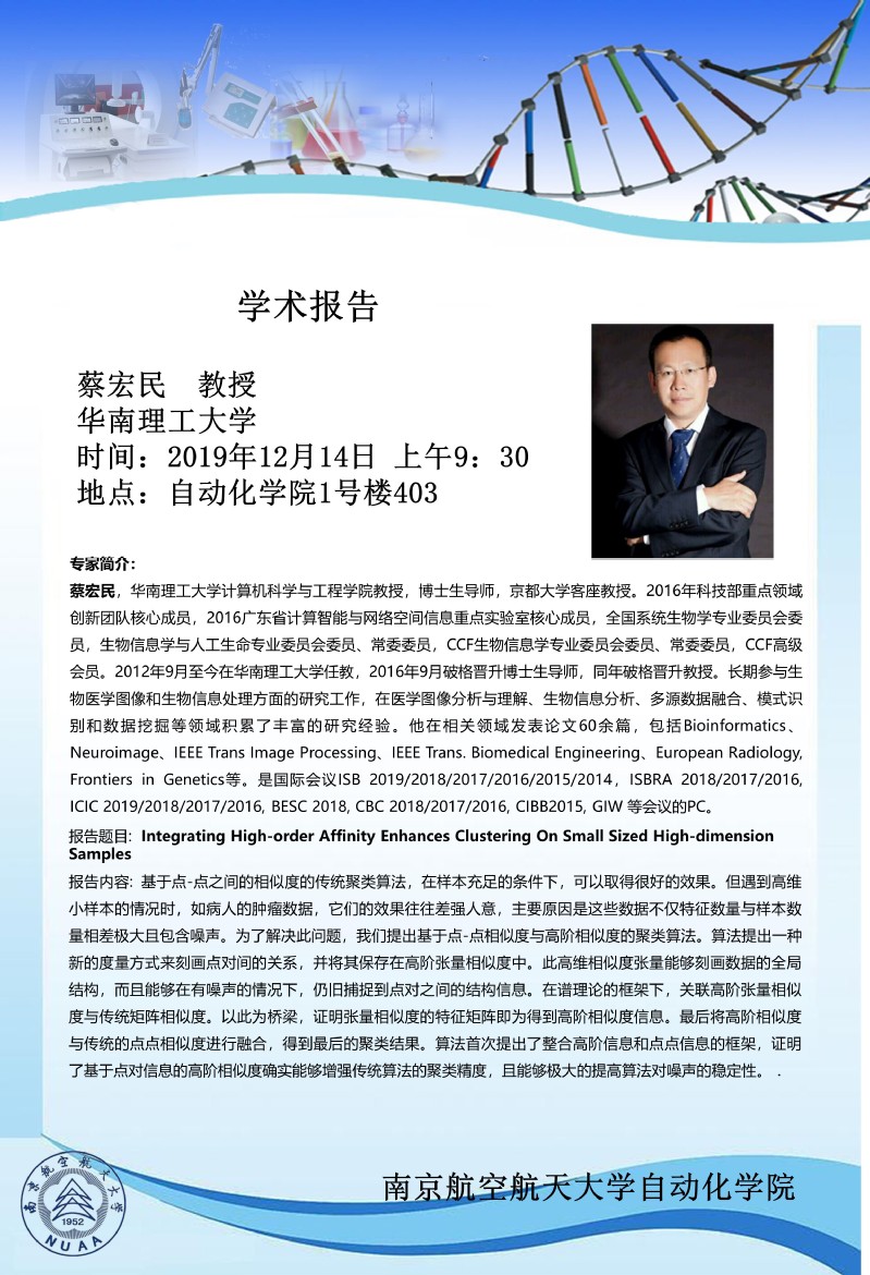 学术报告:Integrating High-order Affinity Enhances Clustering On Small Sized High-dimension
