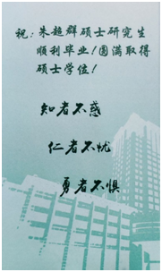 学生代表表示,感谢导航中心对同学们的培养。在导航中心的三年,他们学到了很多,相信这些知识一定会在今后的工作中发挥重要作用。同时,他们也表示参加工作后,也会积极与导航中心开展多方面的交流合作,共同开创更加美好的明天。此外,导航中心为每位毕业生准备了一份小礼物,并附寄语:“知者不惑,仁者不忧,勇者不惧”。希望各位同学能够培养“知、仁、勇”的品德,成为各领域的翘楚!