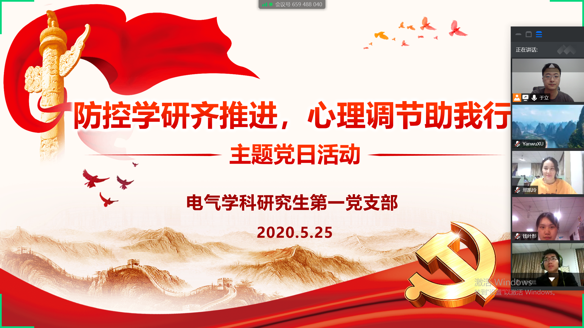 全国两会的顺利召开,展示了党中央、国务院统筹抓好疫情防控和经济社会发展的坚强决心,极大鼓舞了全国上下团结一致、共克时艰的信心和勇气。网上购买双色球 电气学科研究生第一党支部全体师生热切关注全国两会的召开,结合研究生自身疫情防控与研学生活中的心理调控方式方法,5月25日,第一党支部开展了一场以“防控学研齐推进,心理调节助我行”为主题的线上党日活动。支部党员、发展对象、积极分子共计28人参加了本次活动。