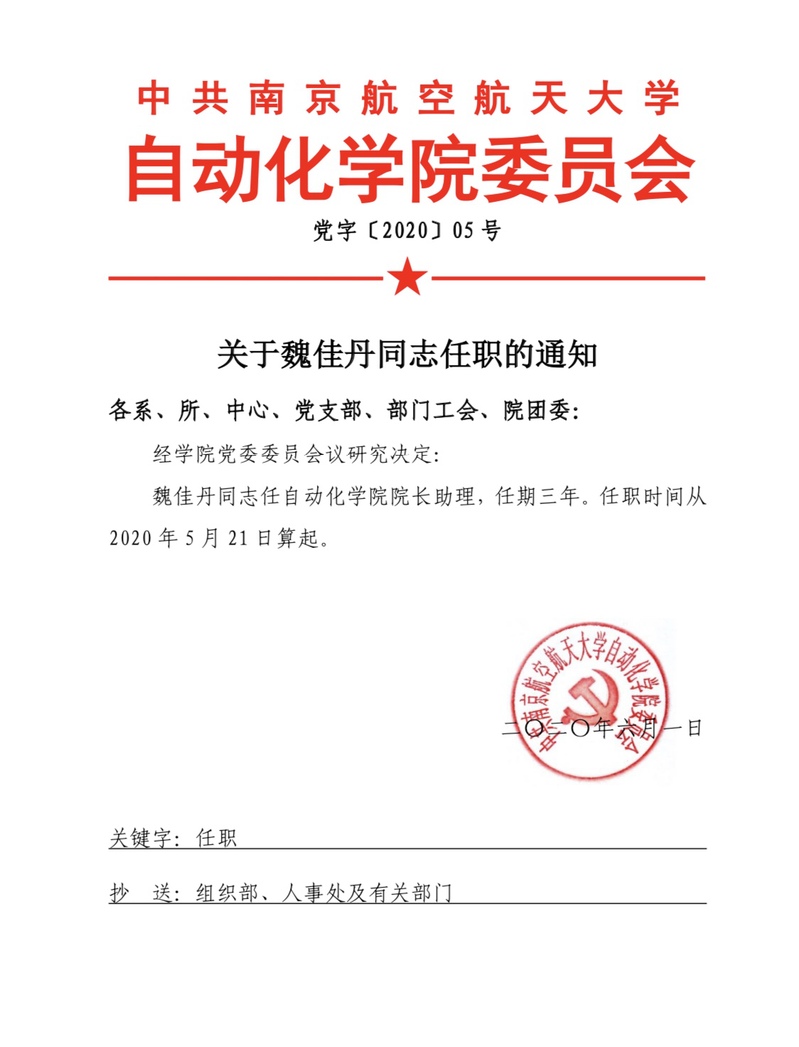关于魏佳丹同志任职的通知