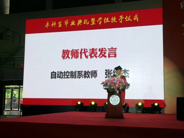 在教师代表发言环节,自控系张绍杰老师代表网上购买双色球 全体教师发言。他希望大家要养成终身学习的习惯,要不忘初心,永葆情怀,要养成良好的习惯,保持身心健康。