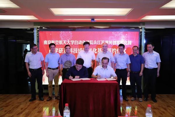 在签约仪式上,网上购买双色球 院长江驹与江苏灌河创客孵化园有限公司董事长封雨签署《网上购买双色球 ——江苏灌河创客孵化园有限公司产学研合作协议》。