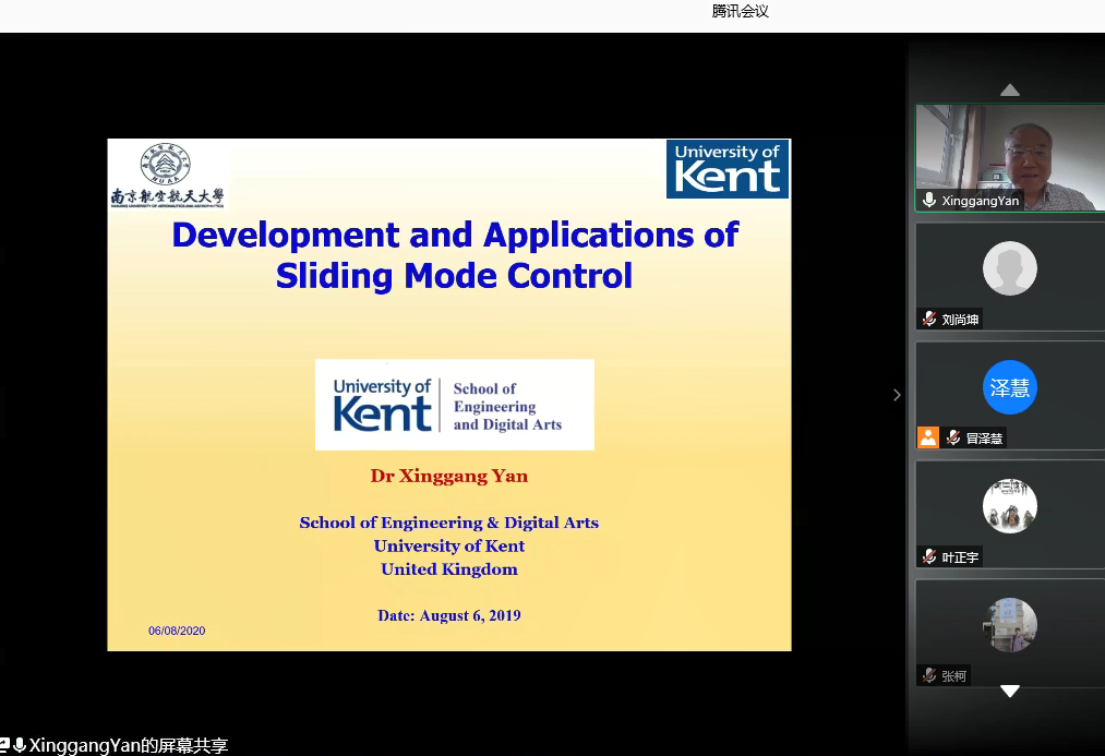 8月6日下午,英国肯特大学工程技术与数码网上购买双色球 严星刚副教授应我校国际合作处和自动化网上购买双色球 的邀请,通过腾讯会议作了题为“Development and Applications of Sliding Mode Control”的线上学术报告,报告由副校长姜斌教授主持,网上购买双色球 冒泽慧、张柯、张绍杰、马亚杰等师生在线参加会议。参会师生对严星刚副教授的交流分享表示热烈欢迎。