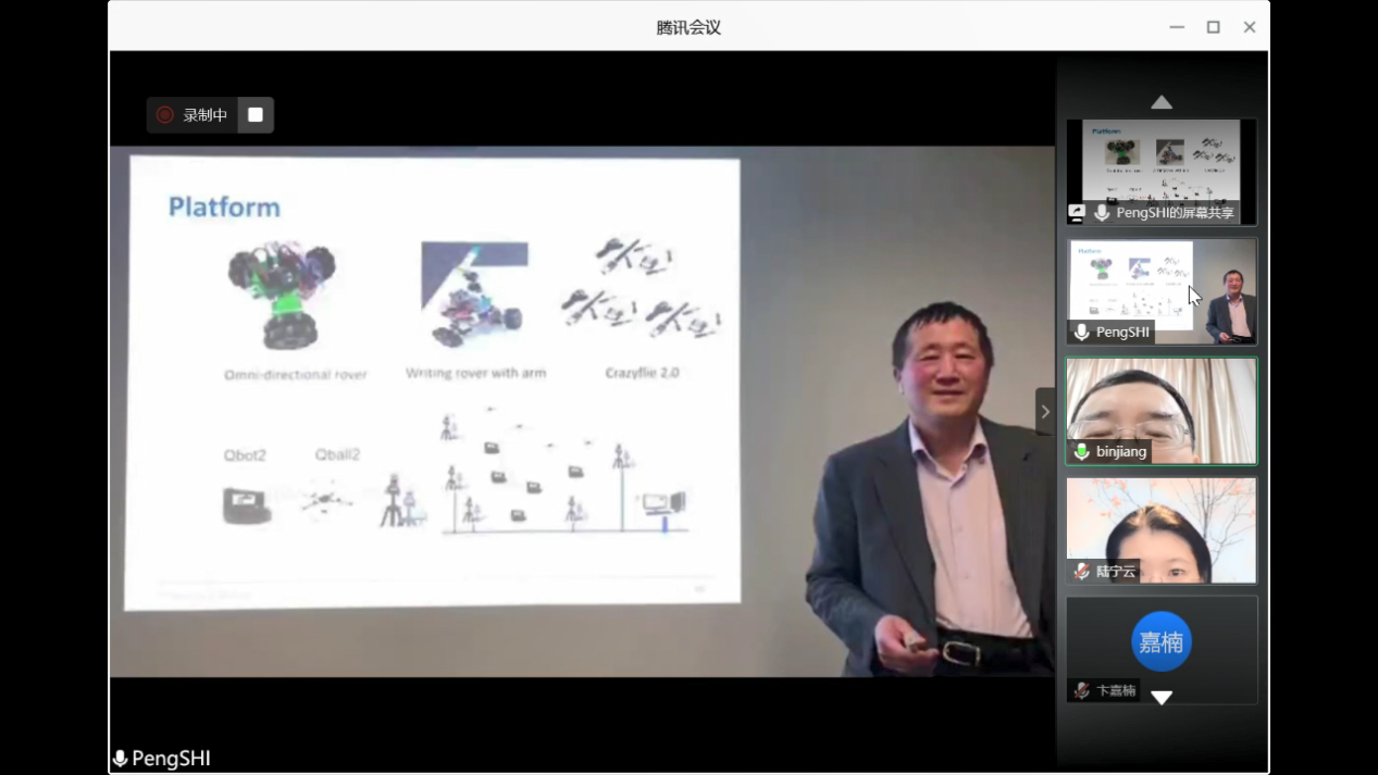 8月12日下午,澳大利亚阿德莱德大学电气与电子工程网上购买双色球 石碰教授应我校国际合作处和网上购买双色球 的邀请,通过腾讯会议作了题为“Formation Control for Multi-agent Systems:Introduction,Analysis and Design”的线上学术报告,报告由网上购买双色球 副校长姜斌教授主持。网上购买双色球 副院长陈谋教授,网上购买双色球 陆宁云、刘春生、冒泽慧、欧阳权、张柯、马亚杰等师生在线参加会议。参会师生对石碰教授的交流分享表示热烈欢迎。
