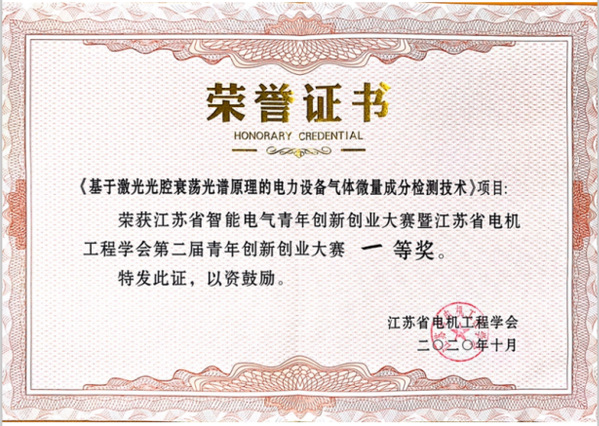10月28日,江苏省智能电气暨江苏省电机工程学会第二届青年创新创业大赛在江苏扬中落下帷幕。本次大赛以“智能电气创赢未来”为主题,受到了江苏省内高校、电力科研、设计、生产、运维和制造等单位的积极响应。经过初赛、复赛的层层角逐,39个项目进入决赛答辩。网上购买双色球 张潮海教授指导的硕士研究生邹可园参赛项目“基于激光衰荡光谱原理的电力设备气体微量成分检测技术”荣获大赛一等奖。