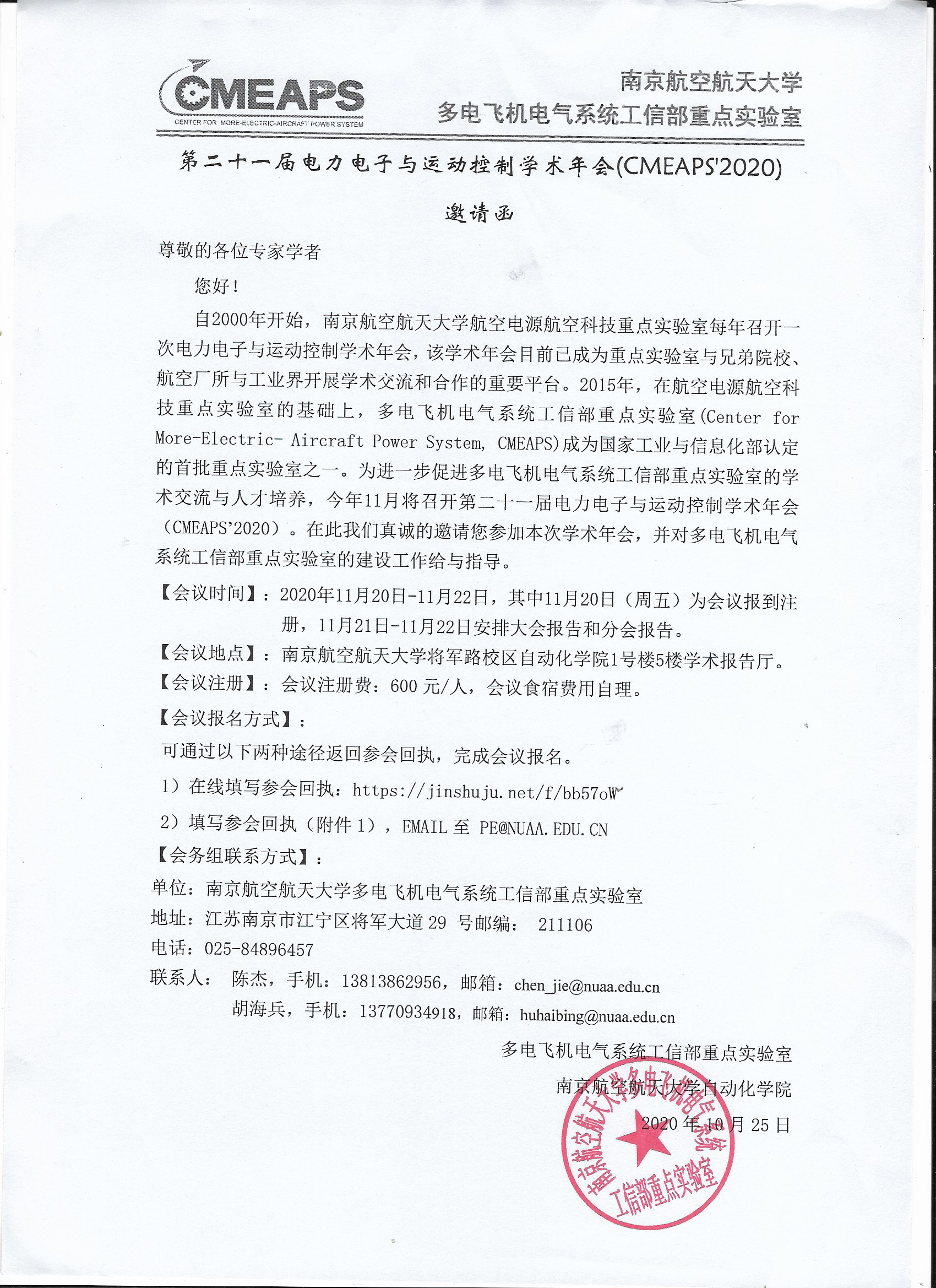 自2000年开始,网上购买双色球 航空电源航空科技重点实验室每年召开一次电力电子与运动控制学术年会,该学术年会目前已成为重点实验室与兄弟院校、航空厂所与工业界开展学术交流和合作的重要平台。2015年,在航空电源航空科技重点实验室的基础上,多电飞机电气系统工信部重点实验室(Center for More-Electric- Aircraft Power System, CMEAPS)成为国家工业与信息化部认定的首批重点实验室之一。为进一步促进多电飞机电气系统工信部重点实验室的学术交流与人才培养,今年11月将召开第二十一届电力电子与运动控制学术年会(CMEAPS’2020)。在此我们真诚的邀请您参加本次学术年会,并对多电飞机电气系统工信部重点实验室的建设工作给与指导。