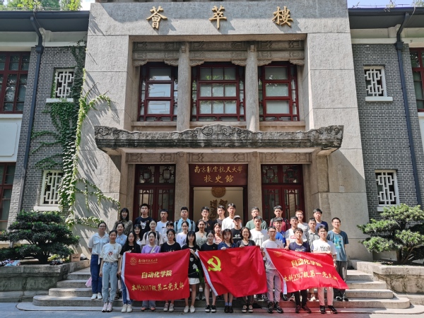 烈日炎炎,在古色古香的荟萃楼校史馆门前,党支部全体成员合影留念。随后在讲解员的带领下,大家一起参观了校史馆“发展历程”、“人才培养”、“科学研究”、“党建引领”4个展厅,重温和体会了南航建校之初的艰苦历程以及建校之后的快速发展。