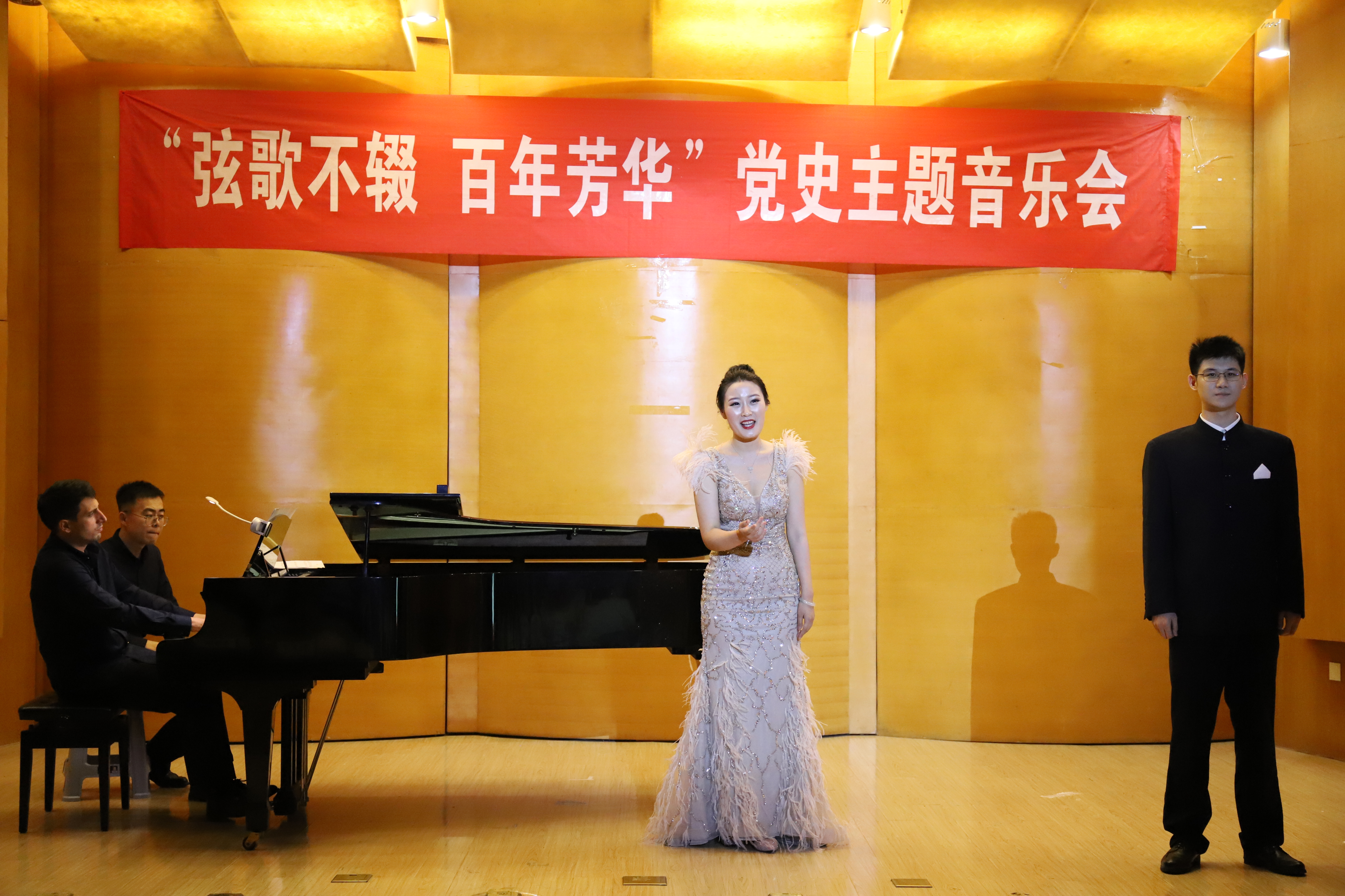 本次演出由网上购买双色球 陈复扬教授担任主讲,艺术网上购买双色球 邱爱金副教授担任声乐指导、网上购买双色球 硕士研究生田睿担任主唱。音乐会将百年党史与精彩的音乐演绎巧妙结合,将艺术表达融入党史学习教育,从艺术角度让师生深切感受百年峥嵘党史,为现场师生们上了一堂生动而高雅的党史课。