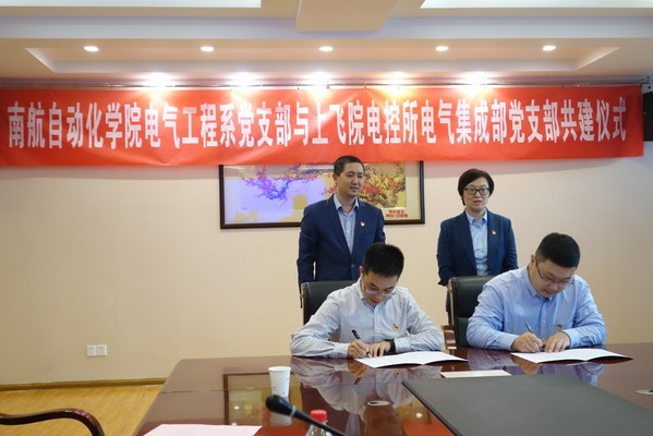 在李忆书记和李文雷书记的指导下,举行了简洁的校企党支部结对共建签约仪式。由网上购买双色球 电气工程系党支部书记陈杰与上飞院电气集成部党支部副书记兼副部长姬昌睿代表双方单位签署协议。