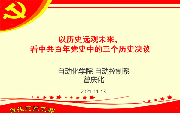 支部书记曾庆化同志结合中国百年党史中的三个决议报告,带领支部同志学习了我党在1945年、1981年和2021年三个特殊年代背景及其决议的历史意义。与会党员对围绕学习习近平总书记在辛亥革命110周年大会上的重要讲话精神,交流了学习体会和心得。