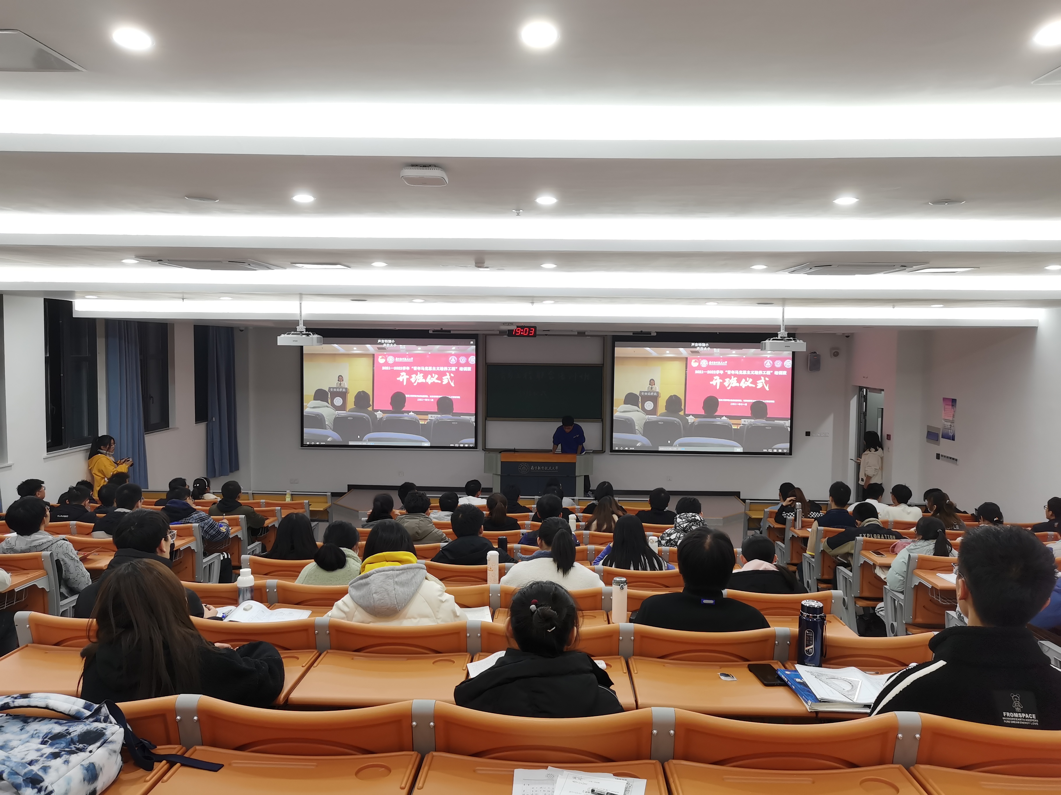 开班仪式在天目湖校区同步直播,200余名同学进行观看学习。