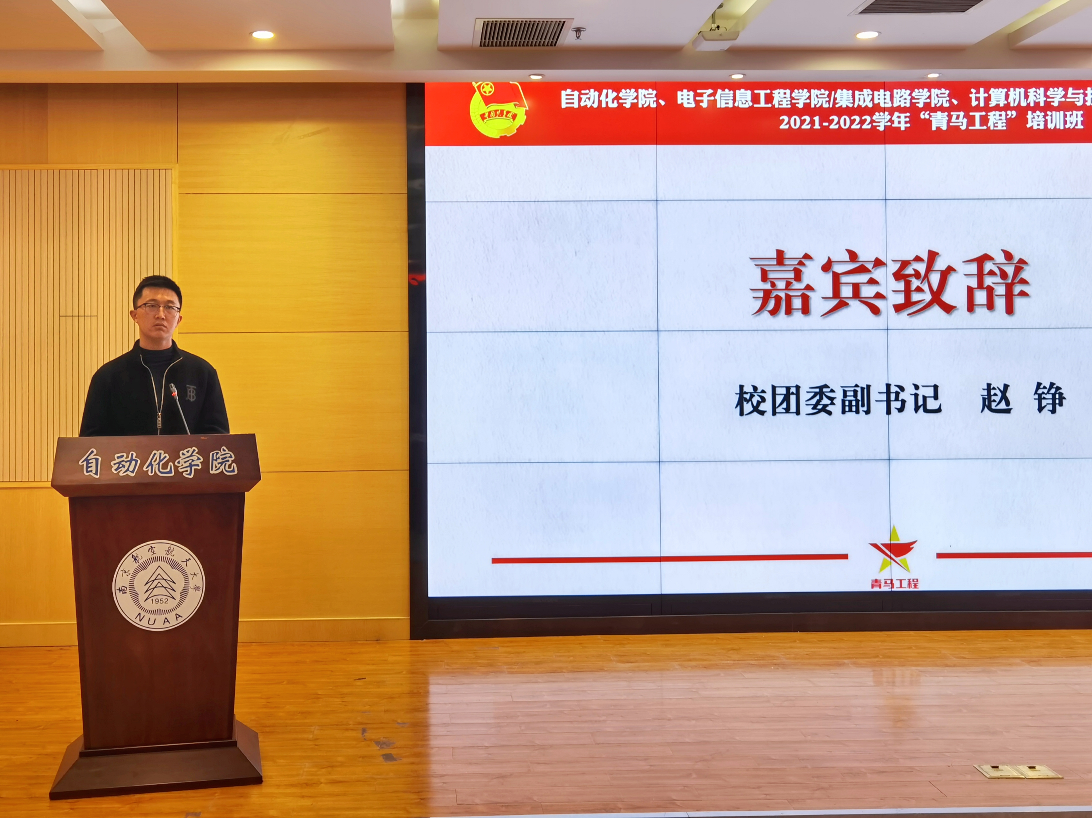 校团委副书记赵铮为开班仪式致辞。赵峥表示,网上购买双色球 高度重视团学工作和学生骨干培养,校团委按照上级团学组织的部署要求,把实施“青马工程”作为网上购买双色球 团员青年思想引领工作的一项重要战略任务长抓不懈,历届青马工程班也取得了显著成就。赵峥对本期青马工程学员们寄予了厚望,他强调新时代青年应该树立远大理想,坚定理想信念,自觉承担起时代使命,要以青马工程为起点,创造一番不凡的青春作为。